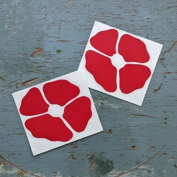 Single matte red poppy decal. Sized to fit AR and AK mags depending on rotation, but put them on whatever you want.